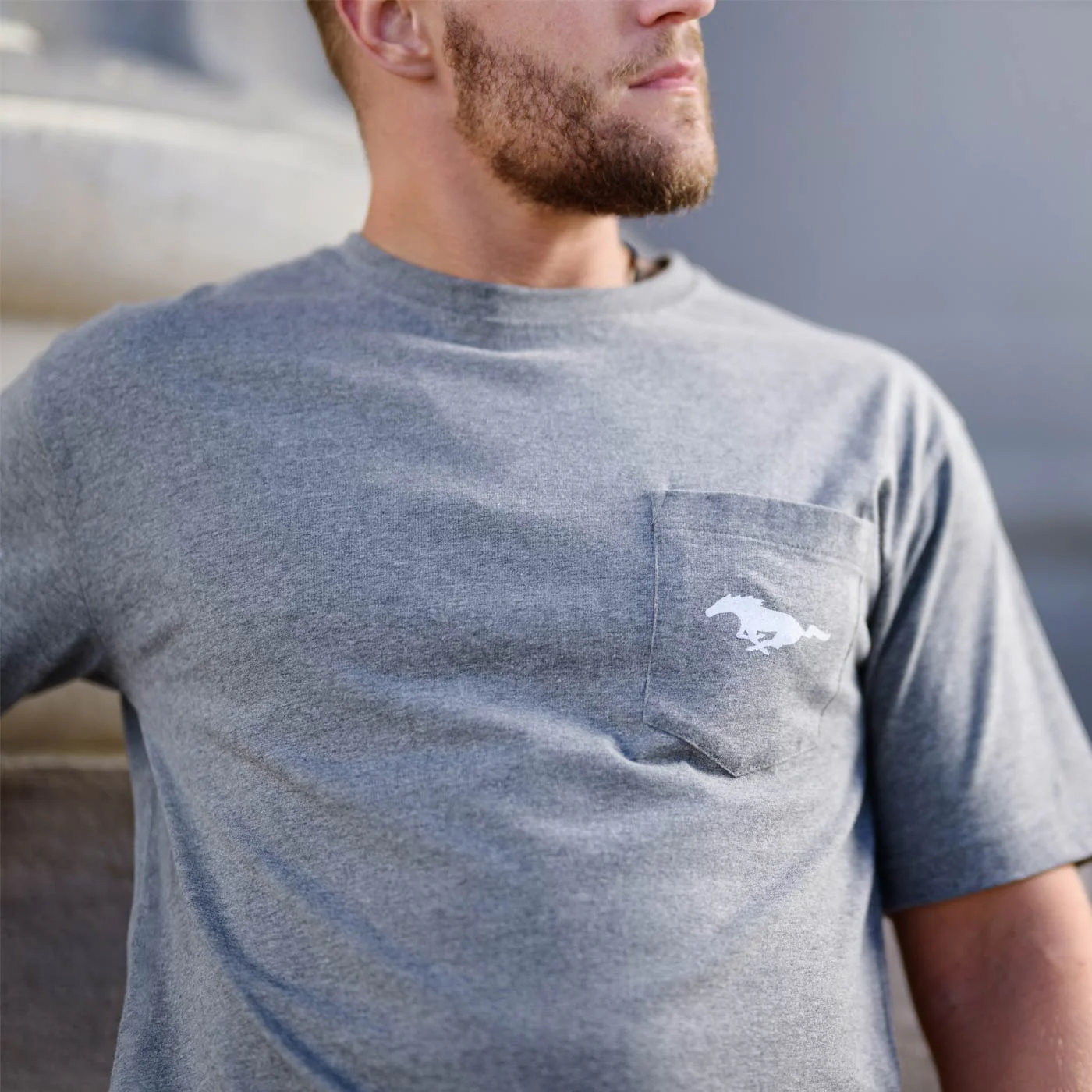 -70%Ford Mustang Mens Tribar Logo Gray Pocket T-Shirt—