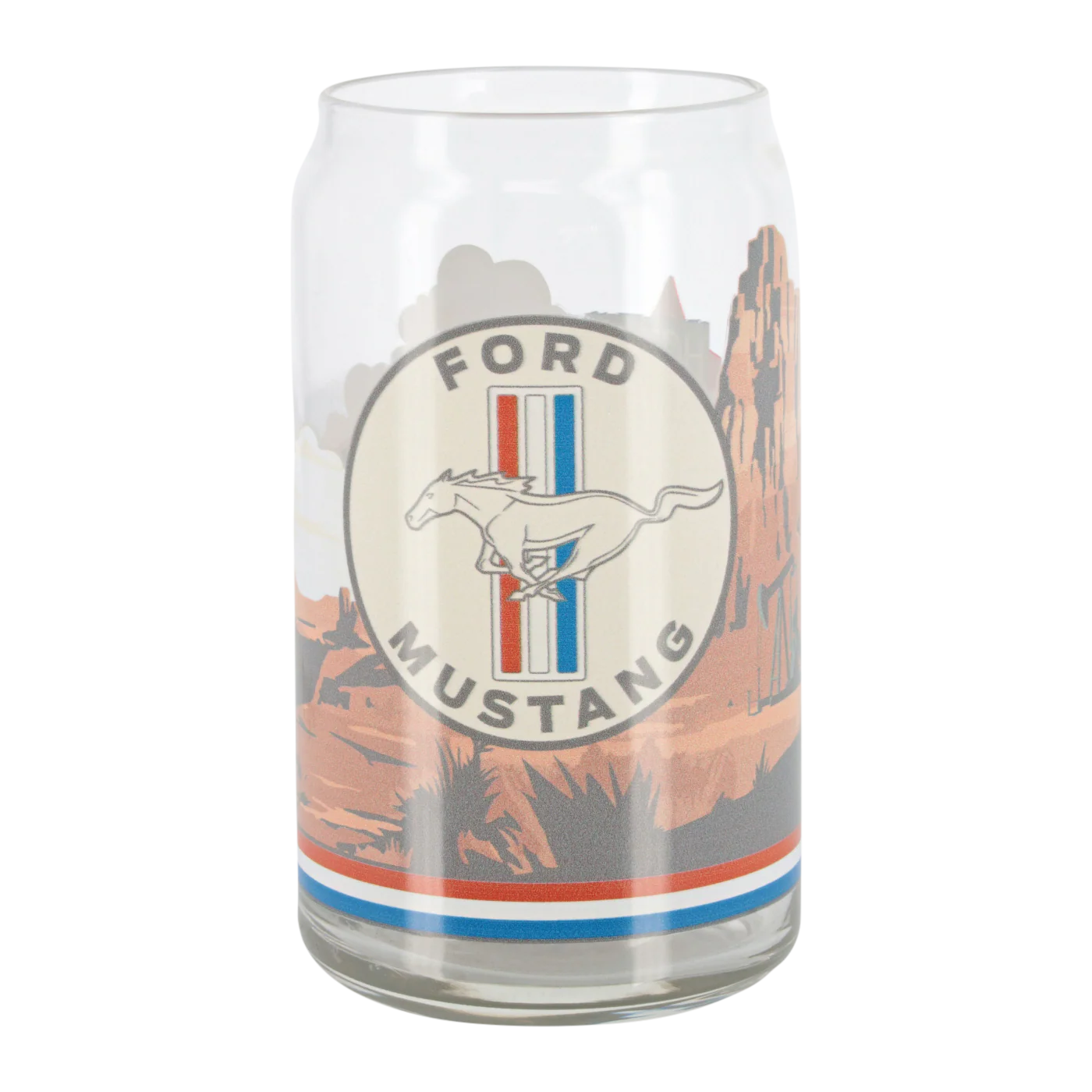 Step up your Drinkware Game with the Ford Mustang Tribar™ Vintage Soda Can Glass.